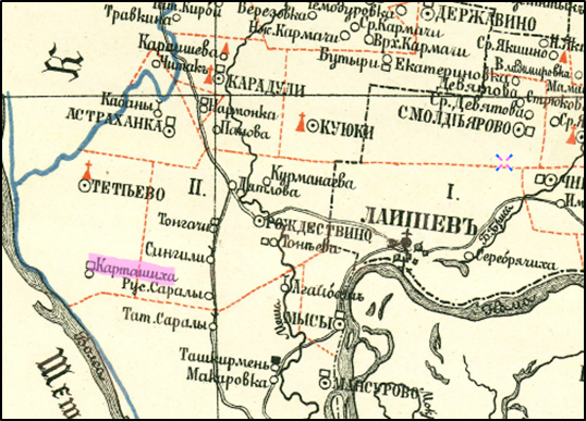 Деревня Карташиха давно уже исчезла с карты Татарстана. Остатки её домов находятся под водой разлившейся в 1956 году Волги.
